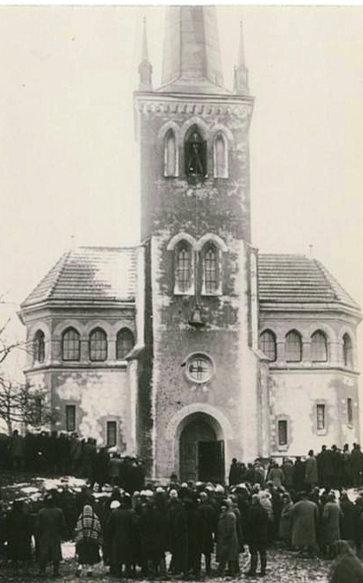 Rõngu Mihkli Kiriku kella üles tõstmine.
